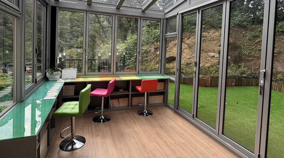 4면이 강화유리로 시공되어 눈이 내리는 겨울풍경, 봄, 여름 쏟아지는 장맛비와 가을 밤하늘에 별빛을 감상 할 수 있는 힐링의 공간으로 Cafe 분위기의 숙박시설입니다.